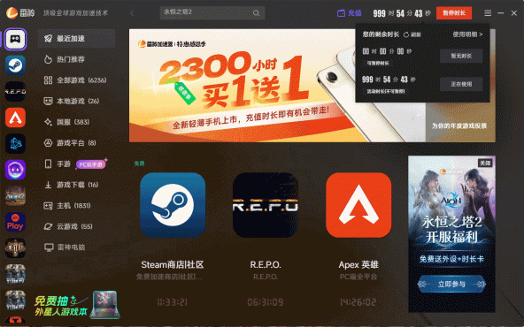 雷神加速器白嫖50小时 给梨加速器终身vip兑换码